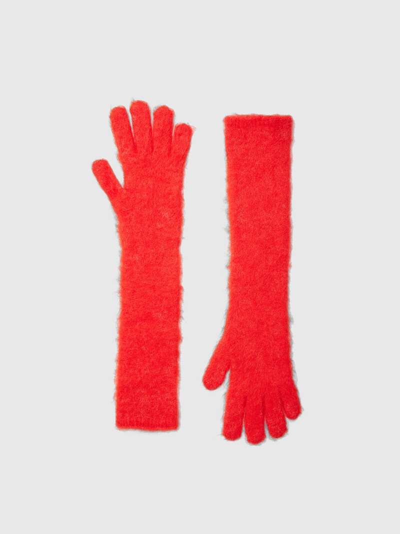 Пушистые и теплые перчатки с удлиненной манжетой можно натянуть повыше или носить, чуть присборив. Мы связали их гладью из объемной, легкой и мягкой пряжи яркого красного цвета, который легко вписать в любой гардероб. А в сочетании с шарфом и шапкой из нашей коллекции получится однотонный акцентный комплект. Сделано в Китае.