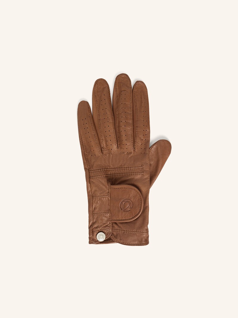 Перчатка для гольфа из нежной коричневой кожи с перфорацией — для тех, кто хочет выделяться на поле не только игрой. Она сидит на руке как влитая благодаря продуманному крою, отсутствию подкладки и застежке велкро. Кнопка с логотипом бренда отстегивается — ее можно использовать, чтобы отметить положение мяча на поле. Продается в коробке в комплекте с пыльником. Золотой статус LWG означает, что фабрика полностью отвечает требованиям к экологической безопасности процессов и химикатов, имеет все необходимые очистные сооружения и заботится о здоровье сотрудников.