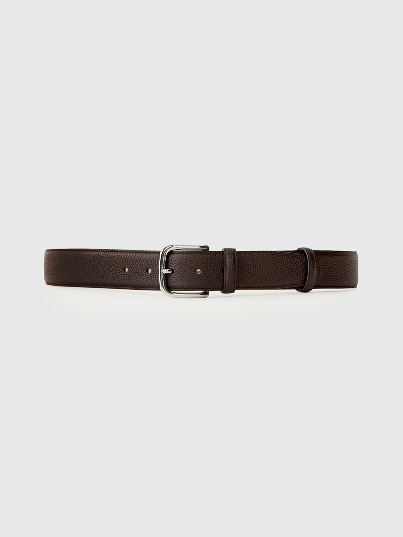 Универсальный ремень из плотной и мягкой коровьей кожи, с брендированной металлической пряжкой и зафиксированными шлевками. Дополнен светлой подкладкой, которая не будет окрашивать вещи. А ширина 4 см идеально подходит к джинсам. Сделано в Китае.