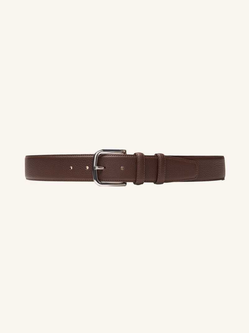 Универсальный ремень с брендированной металлической пряжкой подойдет к любым джинсам. Выполнен из плотной и мягкой разбитой коровьей кожи и дополнен светлой подкладкой, которая не окрасит одежду. В этом сезоне на внутренней стороне мы добавили тиснение с артикулом и размером. Ширина 4 см.
