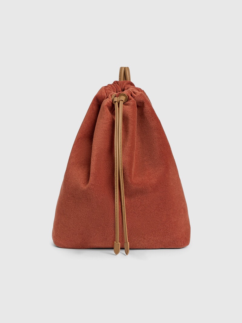 Аккуратный и легкий рюкзак-мешок из махровой ткани — для пляжа и расслабленных городских образов. Одно просторное отделение, плотное дно и кармашек на подкладке позволяют положить в рюкзак все необходимое, а мягкий материал делает аксессуар компактным. Длину кожаных лямок отрегулировать, перевязав узел в нужном месте. Затягивается с помощью шнурка из плотной кожи. Вес рюкзака: 0,45 кг Сделано в Китае