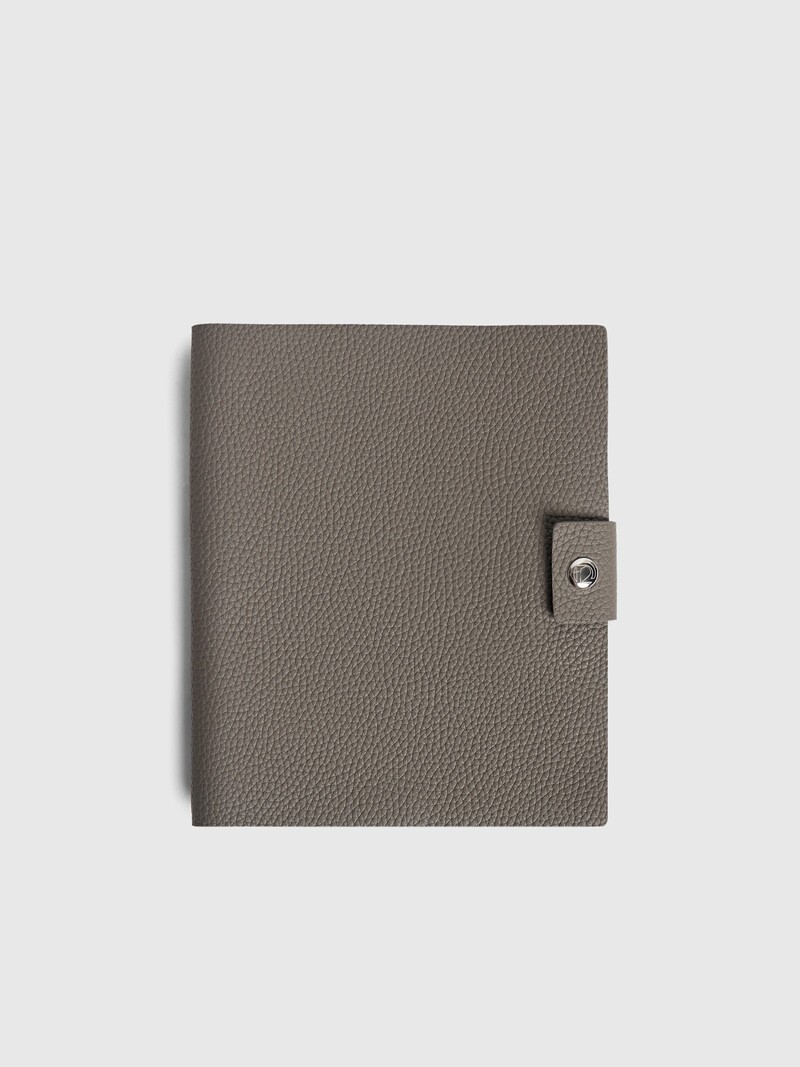 Лаконичный блокнот с обложкой из мягкой коровьей кожи с естественным рисунком и бархатистой внутренней стороной. В этом сезоне он стал еще более компактным и легким — ближе к формату А5. Листы плотной бумаги молочного оттенка фиксируются металлическими кольцами, а к обложке крепятся с помощью кнопок. Можно составить комплект с портмоне из нашей коллекции. В блоке 70 листов.
