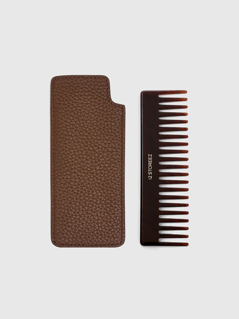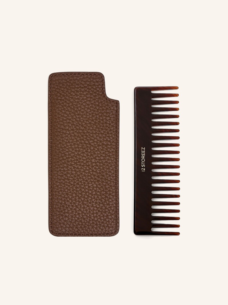 Изящный гребешок с частыми зубчиками подходит для разных типов волос. Приятный на ощупь плотный и гипоаллергенный материал не травмирует кожу, легко очищается и не электризуется. А благодаря чехлу из мягкой разбитой кожи с подкладкой из бархатистой микрофибры аксессуар всегда будет в сохранности в вашей сумке. Продается в коробке с логотипом 12 STOREEZ.