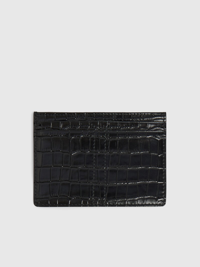 Вместительный картхолдер из мягкой кожи с фактурным тиснением под крокодила — отличный подарок для тех, кто ценит порядок даже в мелочах. В семь отделений поместятся карты, банкноты и техталон, а черный цвет делает картхолдер более практичным. Продается в коробке с логотипом бренда. Сделано в Китае.