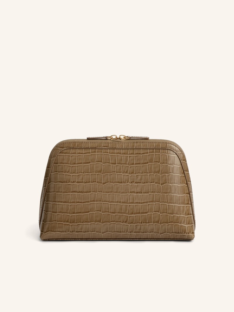 Вместительная косметичка из натуральной телячьей кожи c фактурным тиснением под крокодила. Благодаря прочности и мягкости материала и приятной текстильной подкладке с кармашком ее можно использовать как клатч. Клапаны по бокам не позволят содержимому выпасть, а плотное дно помогает косметичке стоять на поверхности. Застегивается на двухзамковую металлическую молнию, на пуллере — логотип 12 STOREEZ. Пыльник в комплекте.