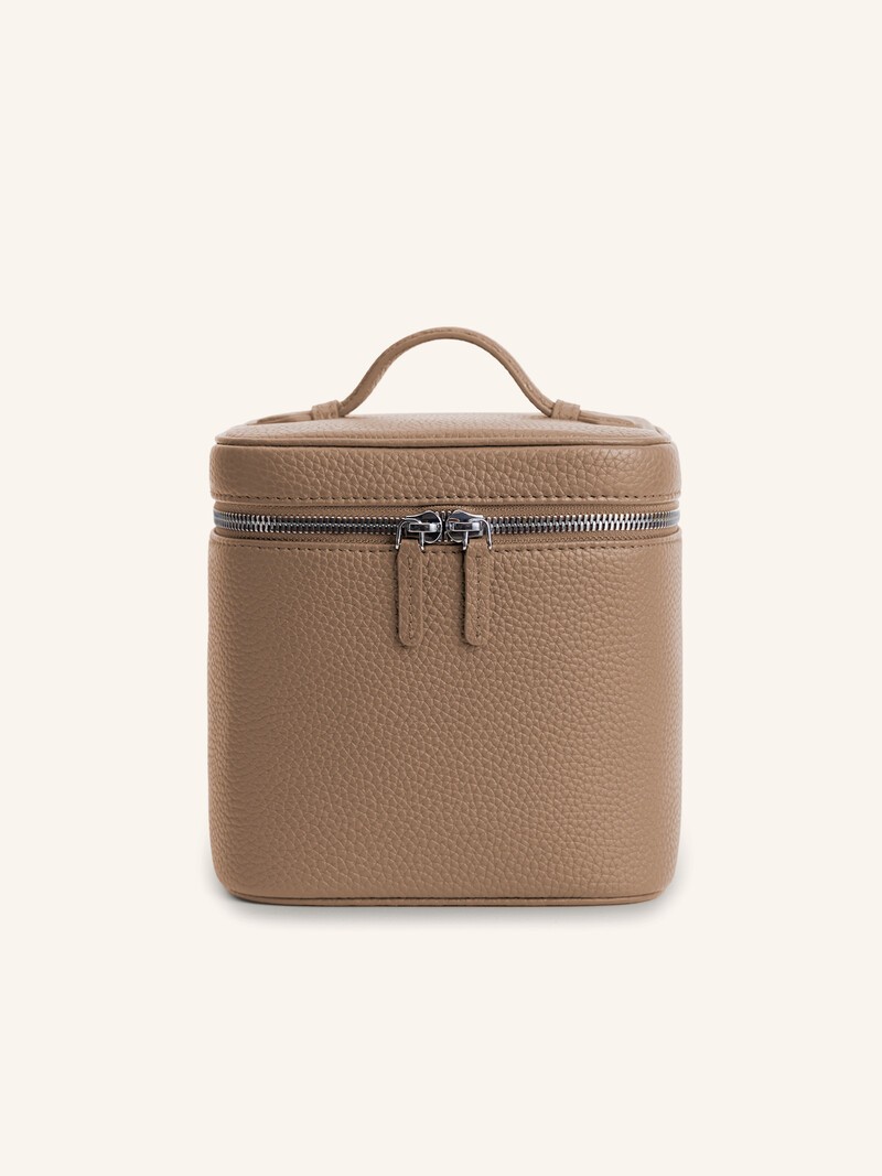 Косметичка из кожи — универсальная и вместительная благодаря своей кубической форме. Кожаные стенки — мягкие и плотные, на молнии два удобных замка, а высота 15 см позволяет разместить внутри даже небольшие бутылочки. Текстильная подкладка дополнена небольшим кармашком. Пыльник в комплекте. Вес косметички: 0,34 кг.