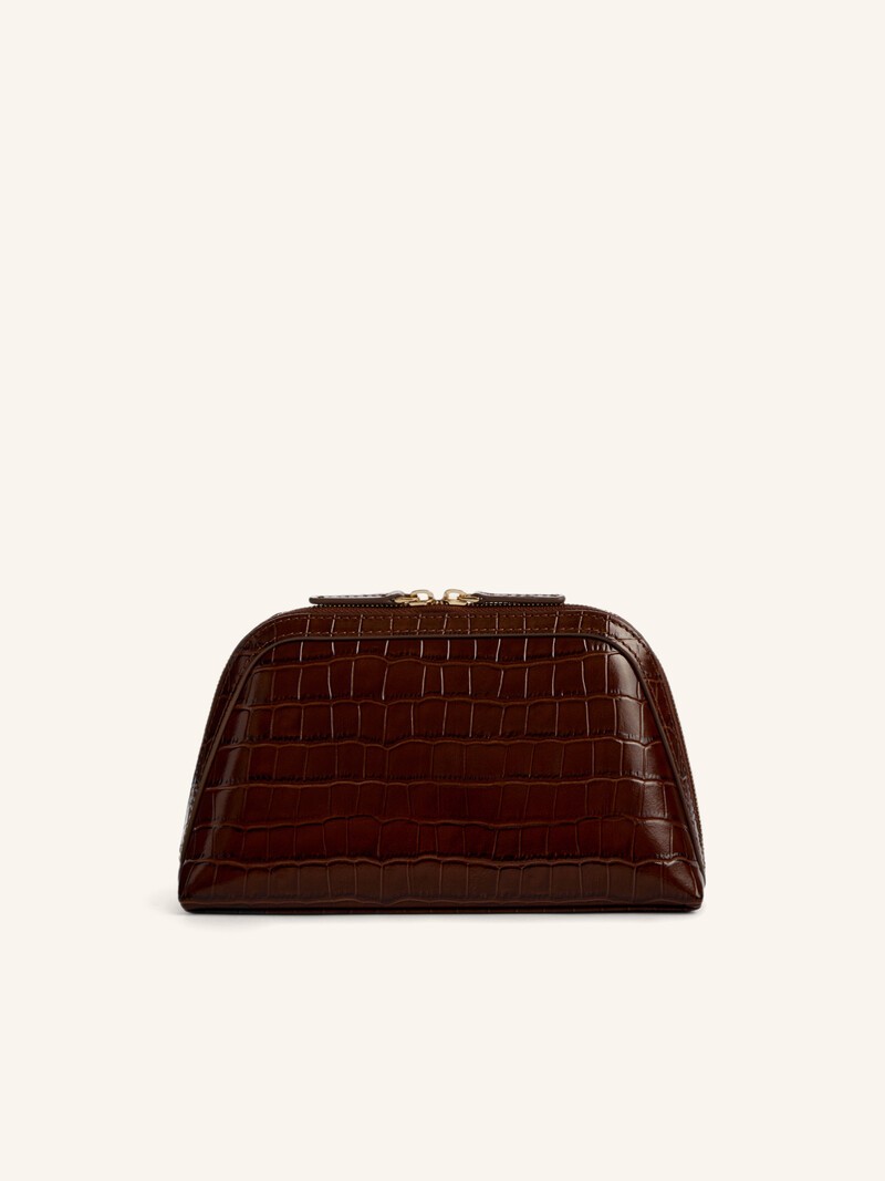 Мини-версия косметички из натуральной телячьей кожи c фактурным тиснением под крокодила. В нее помещается самое необходимое, а благодаря прочности и мягкости материала и приятной текстильной подкладке с кармашком косметичку можно использовать как компактный клатч. Клапаны по бокам не позволят содержимому выпасть, а плотное дно помогает аксессуару ровно стоять на поверхности. Застегивается на двухзамковую металлическую молнию, на пуллере — логотип 12 STOREEZ. Пыльник в комплекте.