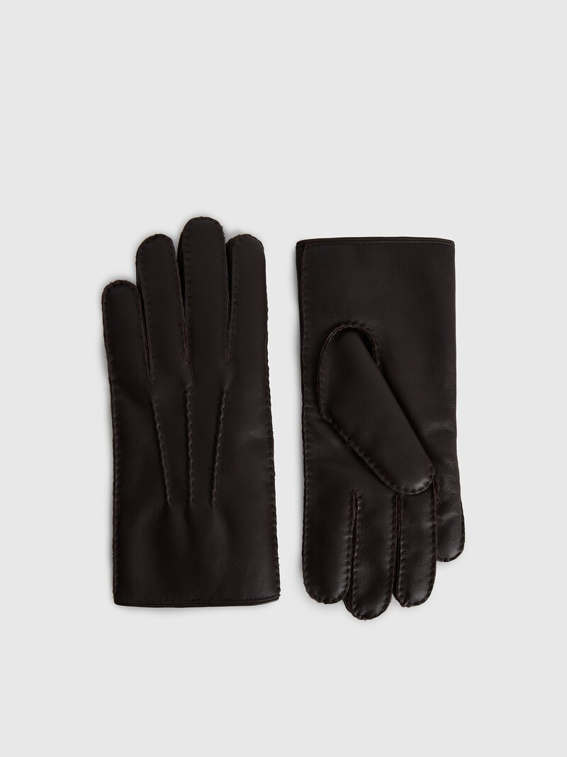 1. Действительно греют — внутри густая овчина с мягкими завитками 2. Сохраняют теплый воздух внутри и легко снимаются, потому что облегают руку свободно 3. Специальное покрытие придает коже легкий блеск и защищает перчатки от влаги и царапин