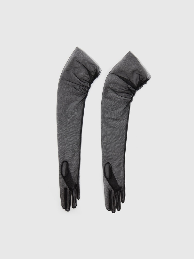 1. Эти вечерние перчатки обволакивают руку: в расправленном виде достигают плеча, и вы можете задрапировать их, как нравится 2. Сшиты из мягкой эластичной сетки — невесомой и прозрачной. Все обработки — деликатные и незаметные Будьте аккуратны с украшениями и сумками, чтобы не повредить тонкие нити