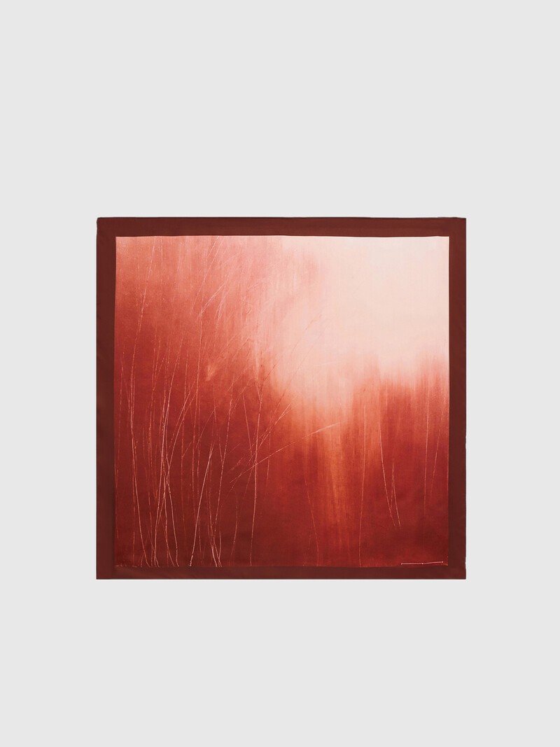Платок из тонкого и плотного тутового шелка, созданный специально для Ярмарки современного искусства Cosmoscow. Эскизом для деликатного принта стала картина «Растворение структуры», созданная художником Никитой Паречиным в партнерстве с креативным директором бренда 12 STOREEZ Ириной Голомаздиной. Каждый платок упакован в коробку из плотного матового картона и дополнен открыткой — чтобы прямо в день покупки вы могли подарить его близким или себе. Размер платка — 90 х 90 см.