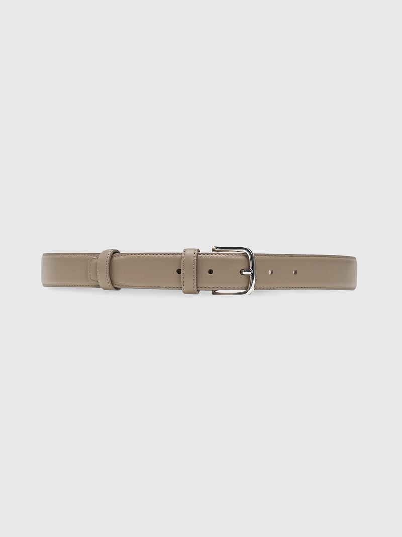 Классический ремень из гладкой коровьей кожи, простроченный по краям, подойдет к любым брюкам. Приятная на ощупь серебристая пряжка выполнена из устойчивого к царапинам сплава, а светлая подкладка не окрасит одежду. Продается в фирменной коробке. Ширина 3 см. Сделано в Китае.