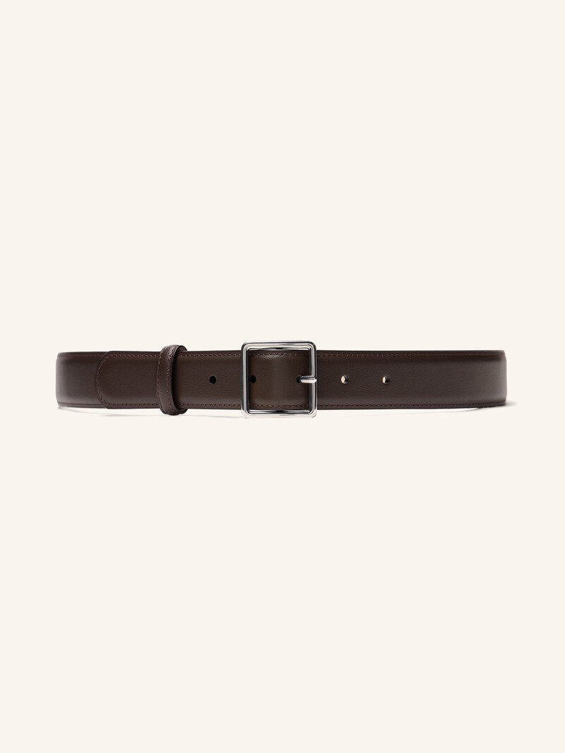 Универсальный брючный ремень с двумя шлевками, простроченными краями и металлической пряжкой. Выполнен из мягкой, гладкой и прочной коровьей кожи и дополнен светлой кожаной подкладкой, которая не окрасит одежду. В этом сезоне на внутренней стороне мы добавили тиснение с артикулом и размером, чтобы вам было проще купить подходящий аксессуар. Ширина 3 см.
