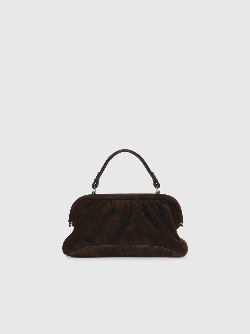 1. Мягкая козья замша с густым велюровым ворсом — пластичная и прочная 2. Фурнитура из нержавеющей стали — устойчива к царапинам и не тускнеет со временем 3. Замок фермуар открывается одним движением. Округлая ручка удобно ложится в ладонь 4. Компактная и легкая — весит всего 200 г и вмещает необходимые вещи, например смартфон и картхолдер 5. Мы провели большую работу, для того чтобы наша замша не оставляла следов на светлой одежде. Ручаемся за нее, но на всякий случай не рекомендуем носить сумку во влажную погоду