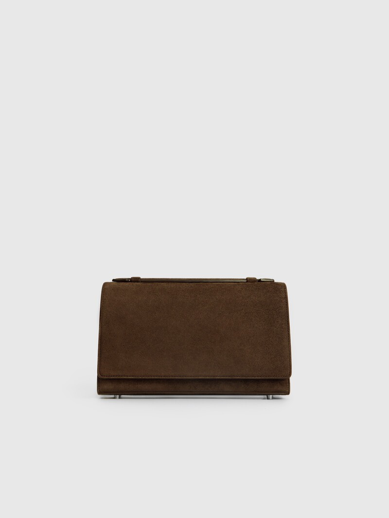 Сумка с длинным ремешком на карабинах — любимая модель наших покупателей. В этом сезоне мы сделали ее из велюра — пластичного, мягкого материала с очень нежным ворсом. Благодаря отсутствию внутренних перегородок сумка вмещает все необходимое, а компактный размер и изящная форма делают ее уместной и днем, и вечером. Застегивается на две магнитные кнопки. Вес сумки: 0,36 кг.