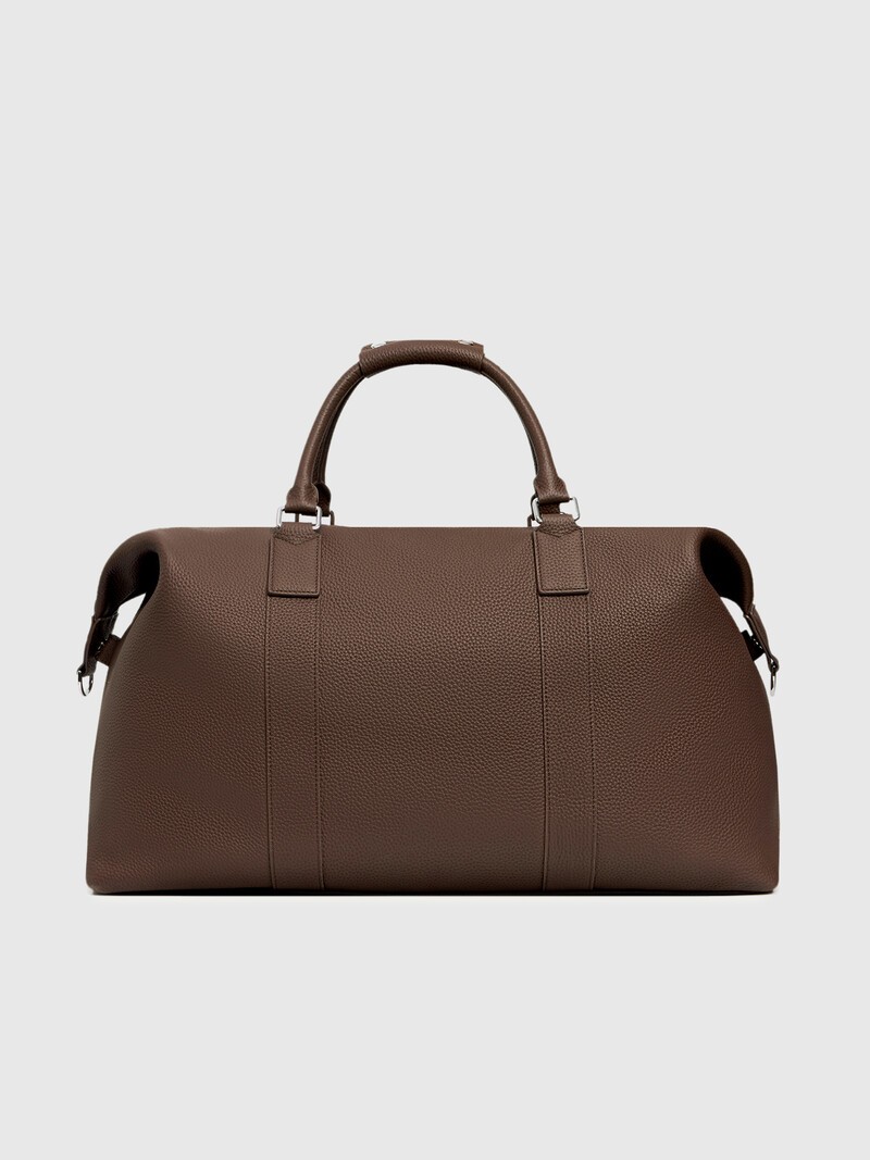 Большая сумка из плотной и мягкой кожи с крупным, фактурным рисунком. В такую поместится все, что может понадобиться в путешествии или командировке — к тому же, благодаря размерам вы сможете взять сумку в салон как ручную кладь. Две ручки легко соединить фиксатором, а кожаная деталь на плечевом ремне из широкой стропы не позволит ему соскользнуть. Застегивается на надежную двухзамковую молнию. Вес сумки: 1,90 кг Сделано в Китае.