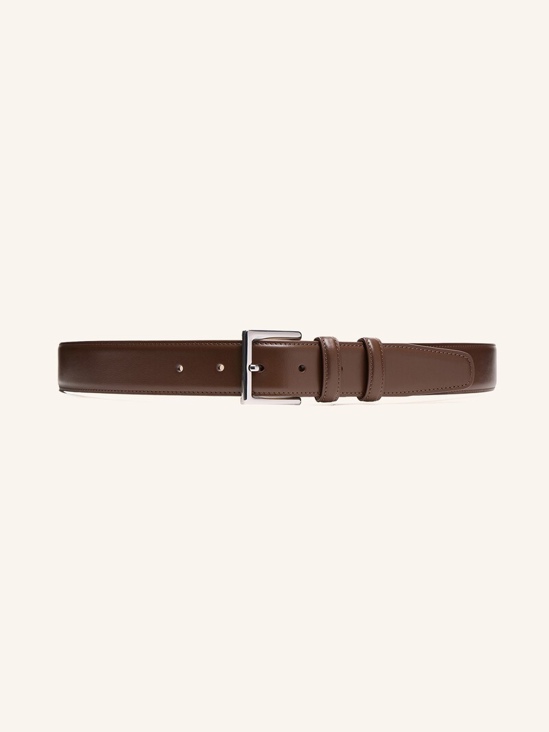 Универсальный брючный ремень с простроченными краями и прямоугольной металлической пряжкой, украшенной логотипом 12 STOREEZ. Выполнен из плотной и мягкой разбитой коровьей кожи и дополнен светлой подкладкой, которая не окрасит одежду. В этом сезоне на внутренней стороне мы добавили тиснение с артикулом и размером, чтобы вам было проще купить подходящий аксессуар. Ширина 3,5 см.