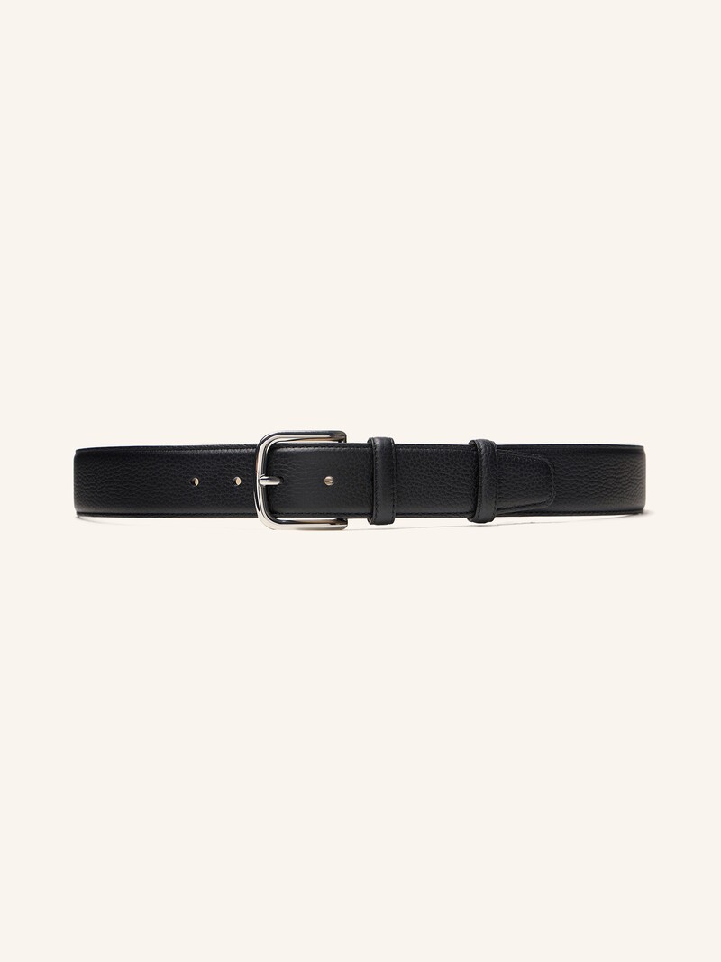 Универсальный ремень с брендированной металлической пряжкой подойдет к любым джинсам. Выполнен из плотной и мягкой разбитой коровьей кожи и дополнен светлой подкладкой, которая не окрасит одежду. В этом сезоне на внутренней стороне мы добавили тиснение с артикулом и размером. Ширина 4 см.