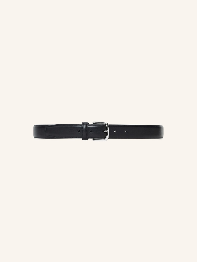Классический ремень из гладкой коровьей кожи, простроченный по краям, подойдет к любым брюкам. Приятная на ощупь серебристая пряжка выполнена из устойчивого к царапинам сплава, а светлая подкладка не окрасит одежду. Продается в фирменной коробке. Ширина 3 см.