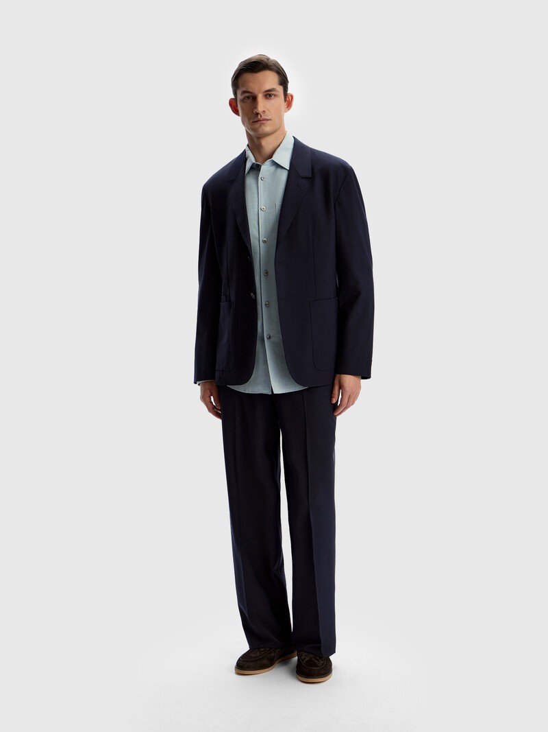 Широкие легкие брюки на эластичном поясе, с функциональным гульфиком и декоративным стежком, будто проложенным вручную. Внутрь пояса продет хлопковый шнурок с металлическими наконечниками, а заутюженные стрелки придают модели более формальный вид. Брюки выполнены из мягкой, тонкой и полупрозрачной ткани на основе шерсти. Сделано в Китае.