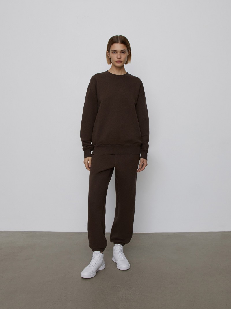 Свободные брюки для теплых образов с пуховиками и толстовками. Хлопок для этой модели собран вручную на побережье Эгейского моря: результате бережной сортировки отобрали только самые длинные и прочные волокна, поэтому трикотаж не будет скатываться и деформироваться после стирок. Каждую маленькую петельку с изнаночной стороны сделали пушистой — такой ворс не осыпается и остается равномерным после стирок. Международный сертификат GOTS (Global Organic Textile Standard) — самый строгий стандарт для органических тканей, подтверждает не только экологичность выращивания, но и социальную ответственность производителя, то есть хорошие условия и достойную оплату труда фермеров. Сделано в Турции.