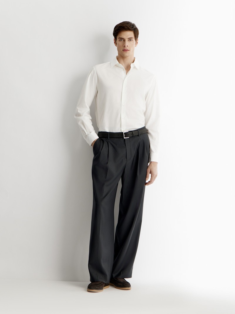 Классические широкие брюки — лаконичные, со стрелками и складками. Мы выбрали для них 100% тонкорунную шерсть, созданную в Италии. Благородный материал с прочным твиловым переплетением продублирован контрастной подкладкой из молочного хлопка в елочку. У брюк достаточный запас длины, чтобы вы смогли посадить их точно по росту. Сделано в Беларуси.