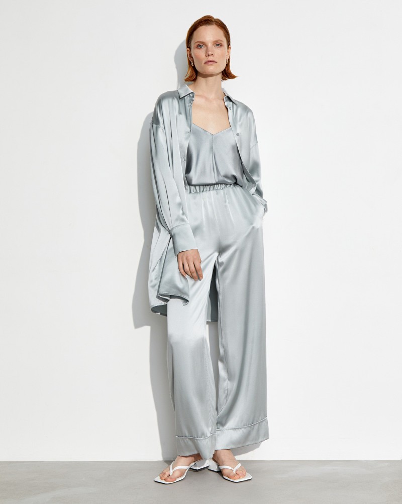 Шелковые брюки. Бестселлер марки 12 STOREEZ, свободные брюки в актуальном пижамном стиле. Пояс на эластичной тесьме, карманы в боковых швах. Брюки выполнены из итальянского шелка, плотного и прочного. Образ завершат блузы или жакеты из легких и струящихся материалов. Сделано в России.