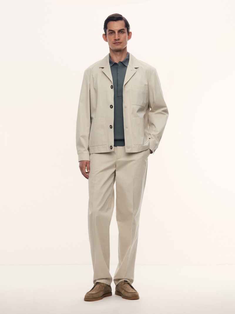 1. Ткань для этой модели для нас создала фабрика в Прато — поставщик Loro Piana, Hermès, Gucci, Yves Saint Laurent, Alexander McQueen и Dries Van Noten 2. Сатиновое переплетение делает хлопок гладким, менее мнущимся и шелковистым на ощупь 3. Универсальная модель на каждый день — слегка зауженные книзу брюки чинос со стрелками 4. Продуманные детали — петелька в области гульфика фиксирует ремень, когда брюки расстегнуты