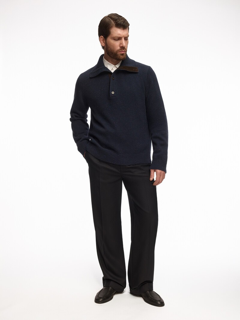 1. Ткань создана на фабрике, которая работает по итальянским технологиям и сотрудничает с Chanel, Hermes, Burberry и Hugo Boss 2. Диаметр волокон шерсти Superfine — 20 микрон, в два раза меньше самого маленького предмета, который можно увидеть без микроскопа. Ткань из такой шерсти — очень легкая и мягкая 3. Чтобы брюки лучше держали форму, мы сделали снизу широкие манжеты 4. Плотный корсажный пояс позволяет носить брюки без ремня 5. Чтобы брюки скользили по ноге и не вытягивались, мы делаем подкладку до колена
