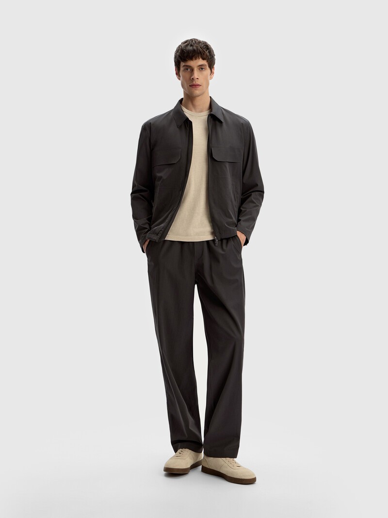 Свободные, чуть зауженные брюки из мягкой технологичной ткани от нашего японского поставщика — для загородных прогулок и образов в стиле спортшик. Внутрь эластичного пояса добавлен шнурок для регулировки посадки, а в боковые карманы поместятся нужные мелочи. Приятный на ощупь пластичный и тонкий материал дополнен пропиткой от влаги. Детали брюк вырезаны при помощи лазера, а швы аккуратно склеены термолентой тон-в-тон. Нижний край мы оставили без подгибки, чтобы брюки можно было подвернуть на любую высоту. Сделано в Китае.