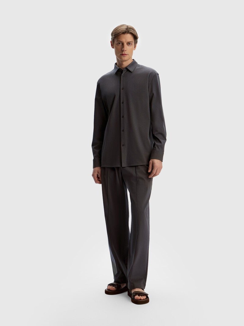 Прямые брюки с застроченными стрелками — комфортные и лаконичные. Такие можно носить как в городе, так и на отдыхе — мы сделали их чуть более узкими, чем в предыдущих сезонах, и предусмотрели запас по длине, чтобы вы могли отрегулировать брюки по росту. Внутри эластичного пояса предусмотрен шнурок. Брюки выполнены из плотного хлопка — материал хорошо держит форму, не скатывается и не выглядит слишком просто. Сочетайте с рубашкой из нашей коллекции. Мерсеризованный хлопок — мягкий и гладкий, с шелковистым блеском. Специальная обработка волокон делает материал более прочным и защищает от выцветания. Сделано в Китае.