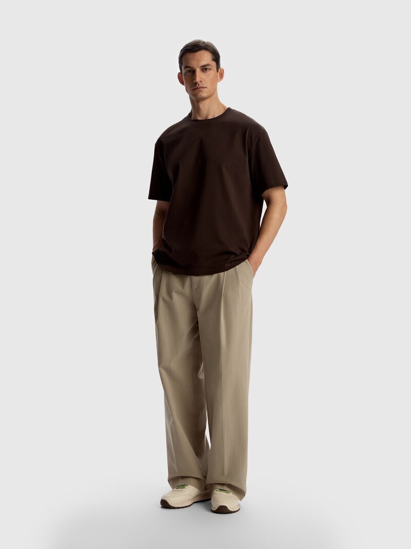 Объемные широкие брюки с двумя складками и удобными карманами по бокам — для холодных дней, когда хочется одеться уютно. Выполнены из плотного хлопка с твиловым переплетением от нашего итальянского поставщика — пластичная и мягкая ткань с бархатистой фактурой гармонично сочетается с вязаным трикотажем и согревающими материалами. А чтобы вы могли отрегулировать длину брючин точно по росту, мы оставляем запас длины и подшиваем аккуратным швом. Сделано в Беларуси.