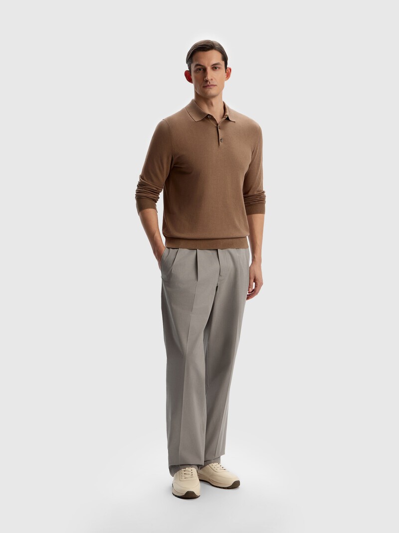 Брюки со складками, переходящими в стрелки, и боковыми карманами — для комфортных расслабленных образов. Слегка зауженный силуэт позволяет носить их не только с классической, но и с любимой спортивной обувью. Внутрь эластичного пояса добавлен шнурок для лучшей регулировки посадки — с ним можно вполне обойтись без ремня. Выполнены из 100% хлопка, произведенного в Италии: плотный и гладкий материал с сатиновым переплетением обладает деликатным блеском и мало мнется. Сделано в России.