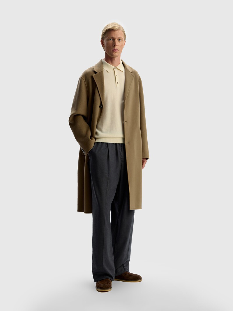 Легкие брюки для прохладных летних вечеров и начала осени — прямые, широкие, с эластичным поясом и шнурком, придающим модели расслабленный вид. Выполнены из мягкой и тонкой длинноволокнистой шерсти, приятной тактильно и отлично подходящей для частого применения. Чтобы вы могли отрегулировать длину брючин точно по росту, мы оставляем их неподшитыми и дополняем специальной тесьмой. Сделано в Китае.