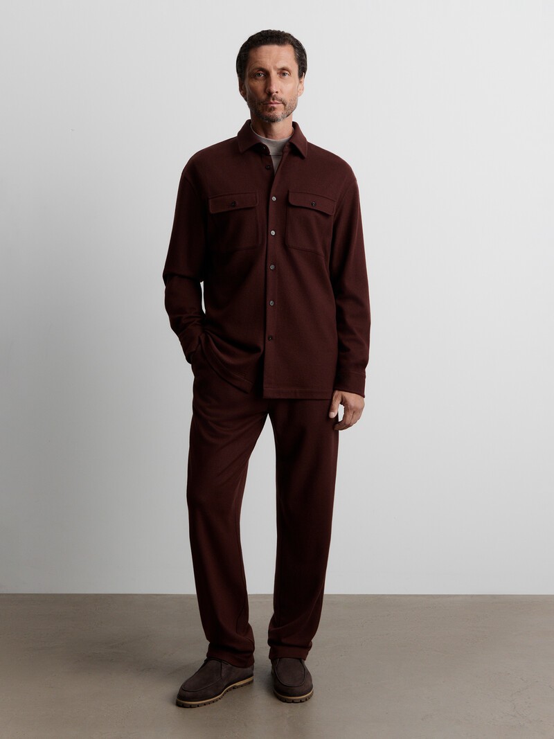 Свободные брюки из шерсти — комфортные и согревающие. Их можно надеть и в офис с нестрогим дресс-кодом, и на прогулку в прохладные дни. Специальная обработка придает материалу мягкость и пластичность, а двойное переплетение интерлок помогает трикотажу не деформироваться. Сделано в Китае.