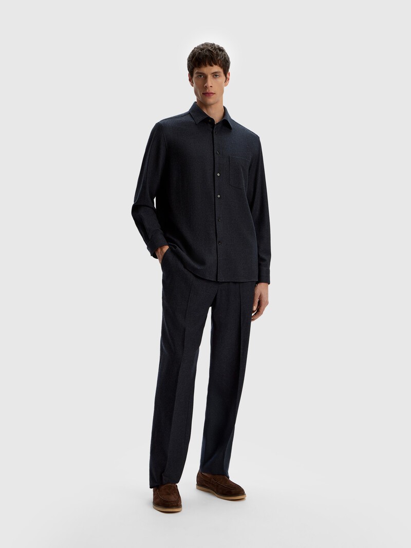 Зауженные брюки из мягкой итальянской шерсти. Комфортный эластичный пояс, карманы и стрелки, благодаря которым брюки можно надеть и в офис, и на прогулку. Тонкая и нежная к коже фланель от итальянской фабрики Drago специально обработана и отталкивает пыль и влагу. Чтобы вы могли отрегулировать длину брючин точно по росту, мы оставляем их неподшитыми и дополняем специальной тесьмой, которая понадобится мастеру в ателье. Сделано в Китае.