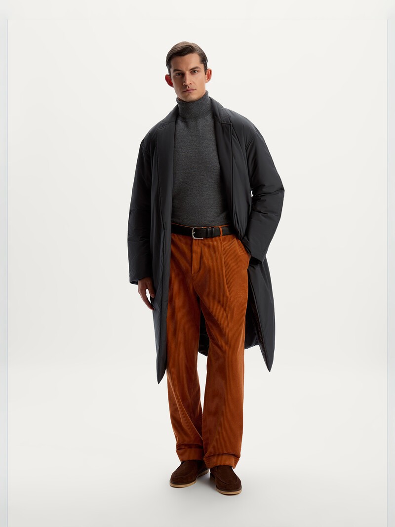 Свободные брюки со складками, стрелками и манжетами по нижнему краю — для уютных осенних образов, Мы выбрали для них плотный испанский вельвет из 100% хлопка — комфортный, дышащий, мягкий, с едва заметным глянцем. Комбинируйте с рубашкой или трикотажем из нашей коллекции. Сделано в России.