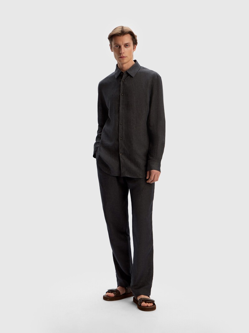 Прямые льняные брюки — летняя классика. В карманы легко поместится горсть ракушек с любимого пляжа или приглашение на закрытый концерт — сокровища, которые в конце сезона напомнят об отдыхе. Слегка зауженные книзу, брюки комфортно садятся по фигуре, а большой припуск поможет отрегулировать длину. Крашение делаве придает мягкой ткани слегка винтажный характер и делает цвет глубоким и сложным. European Flax — сертифицированный европейский лен высшего качества: помогает сократить глобальный углеродный след, безопасен для человека и становится лучше с каждой стиркой. Сделано в Китае.