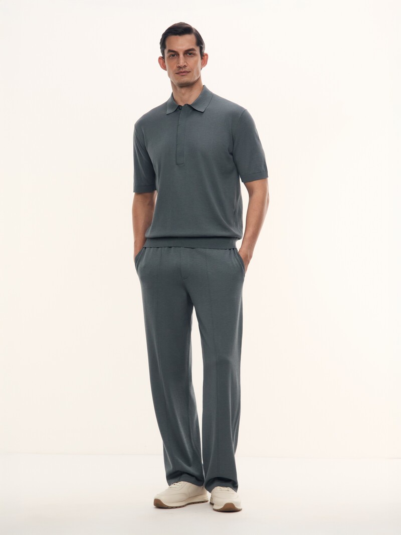 1. Бестселлер, который мы обновили: теперь брюки будут лучше держать форму 2. Нежная на ощупь пряжа из гладкого шелка и дышащего хлопка. Мы связали брюки в две нити, чтобы трикотаж был плотнее 3. Застроченные стрелки визуально вытягивают силуэт, а эластичный пояс можно подтянуть с помощью шнурка Тонкий трикотаж имеет свойство вытягиваться в длину, поэтому мы сделали брюки слегка укороченными.