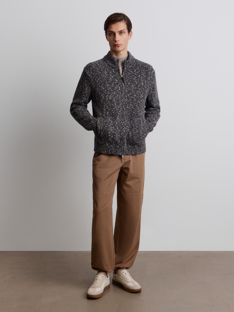 Широкие брюки в стиле аутдор, для которых мы выбрали плотный бархатистый материал на основе хлопка. Низ брюк можно собрать с помощью кулиски, чтобы придать брюкам более спортивный вид. Эластичный пояс мы дополнили шнурком, который фиксирует стоппер из кожи — его легко снять, чтобы не испортить во время стирки. Сделано в Китае.
