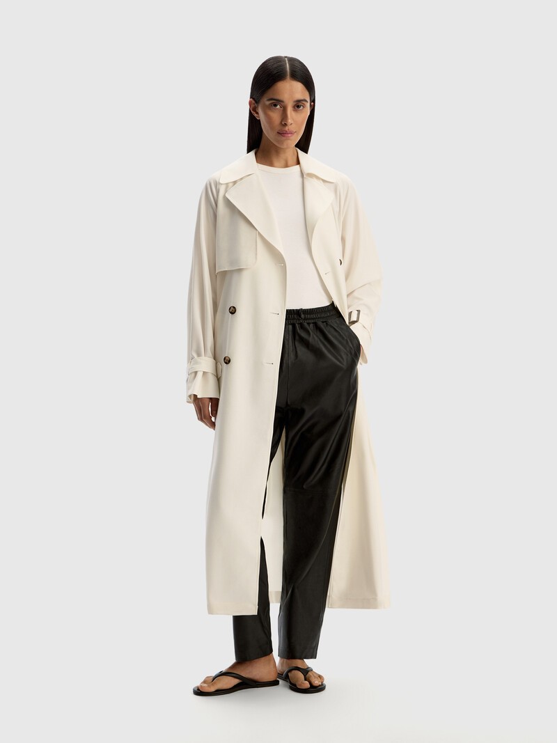 Универсальные кожаные брюки с эластичным поясом, который можно отрегулировать с помощью кожаного шнурка. Комфортный силуэт — свободные в бедрах, слегка зауженные книзу, с удобными карманами. Брюки выполнены из тонкой мягкой кожи ягненка с гладкой фактурой и дополнены частичной подкладкой из эластичного шелковистого материала. Золотой статус LWG означает, что фабрика полностью отвечает требованиям к экологической безопасности процессов и химикатов, имеет все необходимые очистные сооружения и заботится о здоровье сотрудников. Сделано в Турции.
