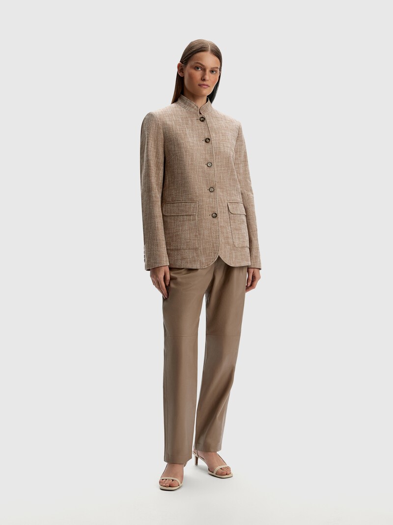 Универсальные кожаные брюки с эластичным поясом, который можно отрегулировать с помощью кожаного шнурка. Комфортный силуэт — свободные в бедрах, слегка зауженные книзу, с удобными карманами. Брюки выполнены из тонкой мягкой кожи ягненка с гладкой фактурой и дополнены частичной подкладкой из эластичного шелковистого материала. Золотой статус LWG означает, что фабрика полностью отвечает требованиям к экологической безопасности процессов и химикатов, имеет все необходимые очистные сооружения и заботится о здоровье сотрудников. Сделано в Турции.