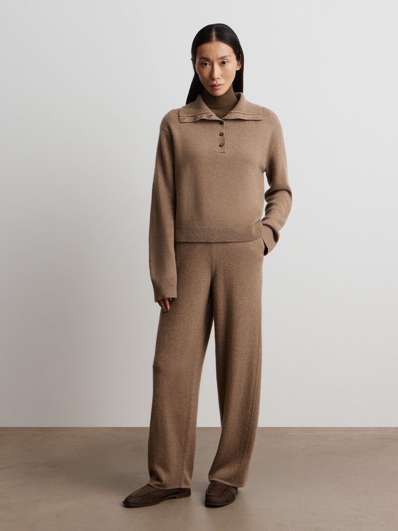 Теплые легкие брюки из нежного и легкого кашемира — в таких прогулки по осеннему городу станут еще приятнее. Мы сделали их слегка укороченными — так удобнее носить их с высокими ботинками, и дополнили пояс замшевым шнурком — посадку будет просто отрегулировать. При трении о шероховатые поверхности пушинки кашемира могут скатываться. Чтобы удалить пилли, пользуйтесь специальной машинкой.