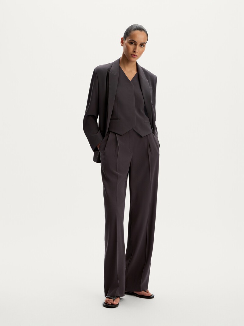 Прямые длинные брюки со слегка заниженной посадкой — комфортная модель для офиса, которая легко впишется в ваш гардероб. Мы выбрали для этой модели ткань от нашего партнера в Португалии — тонкий матовый креп, пластичный и легкий. Сочетайте с жилетом и жакетом из нашей коллекции. Сделано в России.