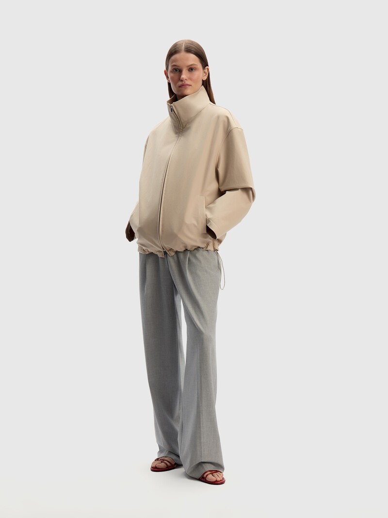Прямые и длинные брюки со складками, переходящими в стрелки, напоминают мужские. Мы выбрали для них ткань от нашего португальского поставщика — за счет плотного переплетения брюки хорошо держат складки и долго служат. Нейтральные цвета позволят вписать их в любой гардероб. Комбинируйте с жакетом из нашей коллекции. Без подкладки. Сделано в Турции.