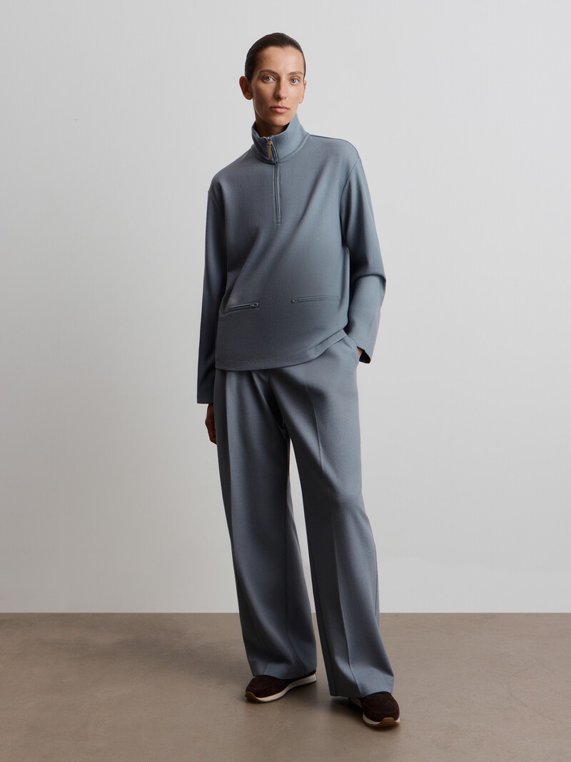 Широкие теплые брюки с заутюженными стрелками и гульфиком на молнии, как в текстильных моделях. Выполнены из мягкой и плотной шерсти от нашего китайского поставщика, слегка ворсистой с обеих сторон и приятной на ощупь. Благодаря переплетению интерлок материал хорошо держит форму и защищает изделие от деформации. Сочетайте с толстовкой из нашей коллекции. Сделано в Китае.