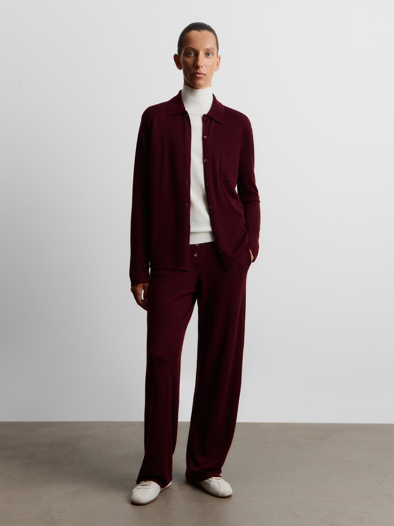 Легкие брюки из деликатной шерсти австралийского мериноса и кашемира — для прогулок и отдыха. Мы сделали их прямыми и свободными снизу, чтобы создать более расслабленный и спокойный образ. Тонкий трикотаж ложится мягкими складками и помогает сберечь тепло. При трении о шероховатые поверхности пушинки кашемира могут скатываться. При правильном уходе первые пилли могут появится на изделии спустя 4-7 носок. Чтобы удалить пилли, пользуйтесь специальной машинкой. Сделано в Китае.
