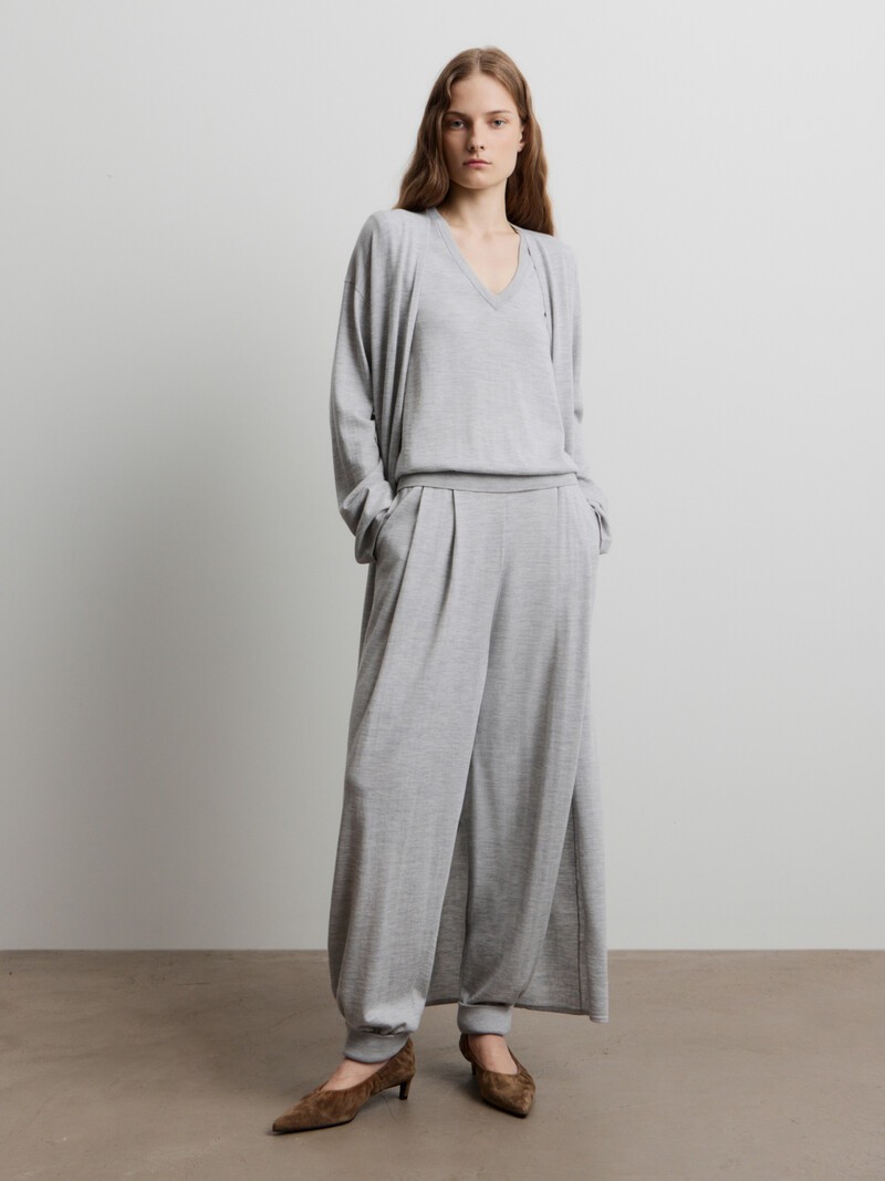 Легкие брюки-аладдины из тонкой шерсти австралийского мериноса — для комфортных, но аккуратных образов в теплые дни. Защипы делают силуэт более собранным, а пластичны складки подчеркивают еле заметный блеск струящегося трикотажа. Сочетайте с жилетом или футболкой из нашей коллекции. У этого изделия низкая пиллингуемость. При правильном уходе первые пилли могут появиться на нем в среднем через 10 носок. Сделано в Китае.