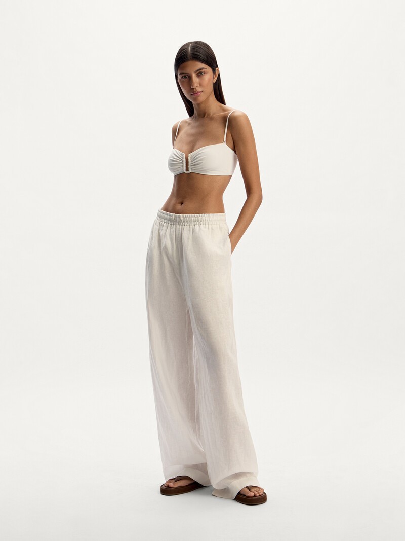 Прямые брюки из тонкого легкого льна с внутренними шортами мини из хлопкового батиста. Широкая подгибка снизу помогает этой модели хорошо держать форму, а резинка в поясе и кулиска на шнурке обеспечивают комфортную посадку. Пластичная и приятная к телу ткань универсального оттенка позволяет сочетать брюки практически с любым верхом — к примеру, с рубашкой из нашей коллекции. European Flax — сертифицированный европейский лен высшего качества: помогает сократить глобальный углеродный след, безопасен для человека и становится лучше с каждой стиркой Сделано в Китае.