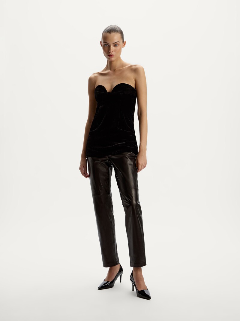 Прямые узкие брюки из кожи — базовые, с удобной средней посадкой. Они комфортно облегают бедра, мягко подчеркивают силуэт и благодаря универсальному черному цвету гармонично сочетаются с любым верхом. Выполнены из тонкой, пластичной кожи ягненка с деликатным естественным блеском. Со временем этот материал примет форму тела, поэтому подкладку мы сделали эластичной. Застегиваются на долговечную молнию Riri. При выборе размера убедитесь, что брюки сидят свободно — так они прослужат вам намного дольше. Золотой статус LWG означает, что фабрика полностью отвечает требованиям к экологической безопасности процессов и химикатов, имеет все необходимые очистные сооружения и заботится о здоровье сотрудников. Сделано в Турции.
