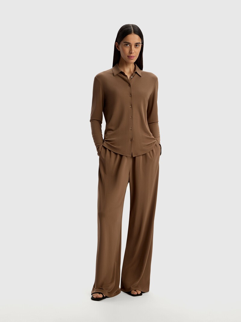 Свободные длинные брюки с эластичной тесьмой в поясе для комфортной посадки и карманами по бокам. Они пригодятся в любом сезоне: легкий и тонкий струящийся креп хорошо держит форму и образует красивые пластичные складки. Сделано в Китае.